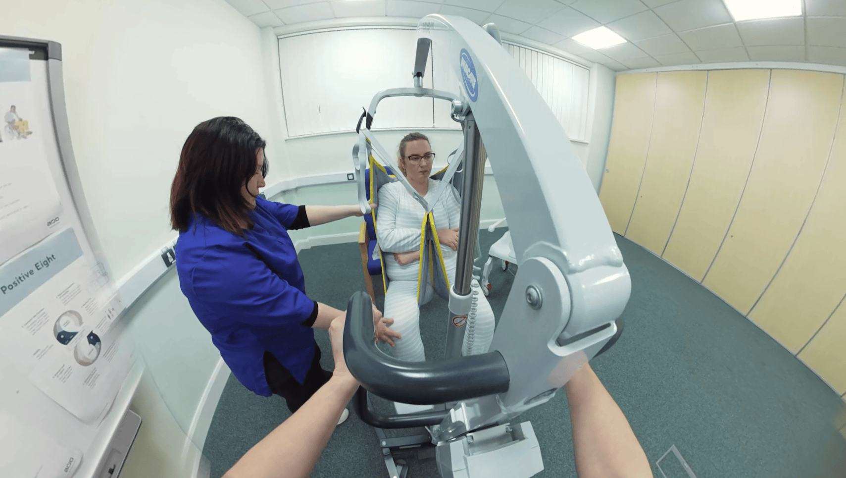 CarerVR is a social care training application that Juice Immersive developed with Vere Experiences and NHS Wales (National Health Service Wales). This project aimed to train professional and unpaid carers in the correct techniques for assisting individuals with mobility and using care equipment, utilizing Juice Immersive's EmbodyCam® for a first-person perspective to enhance the sense of practical application.